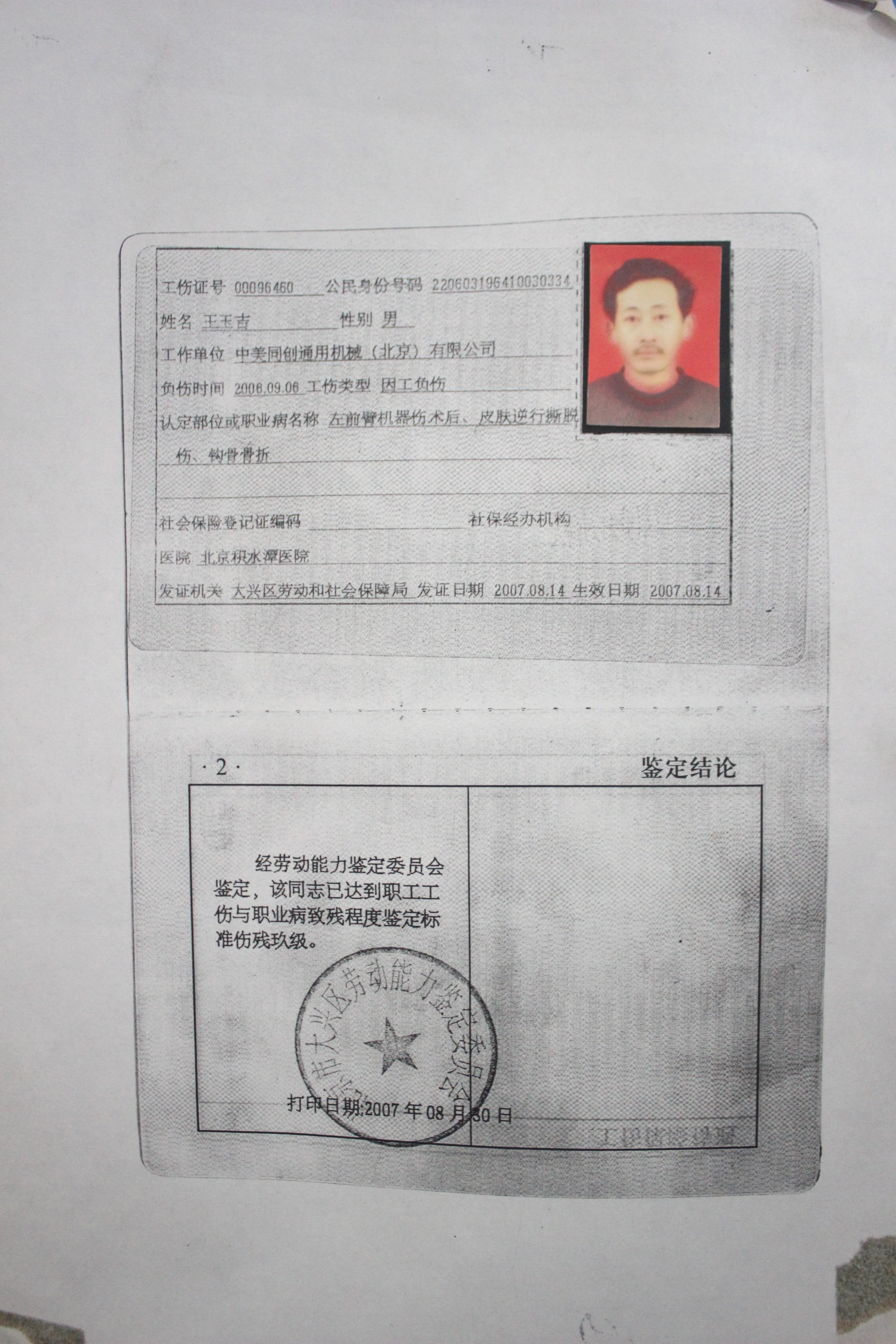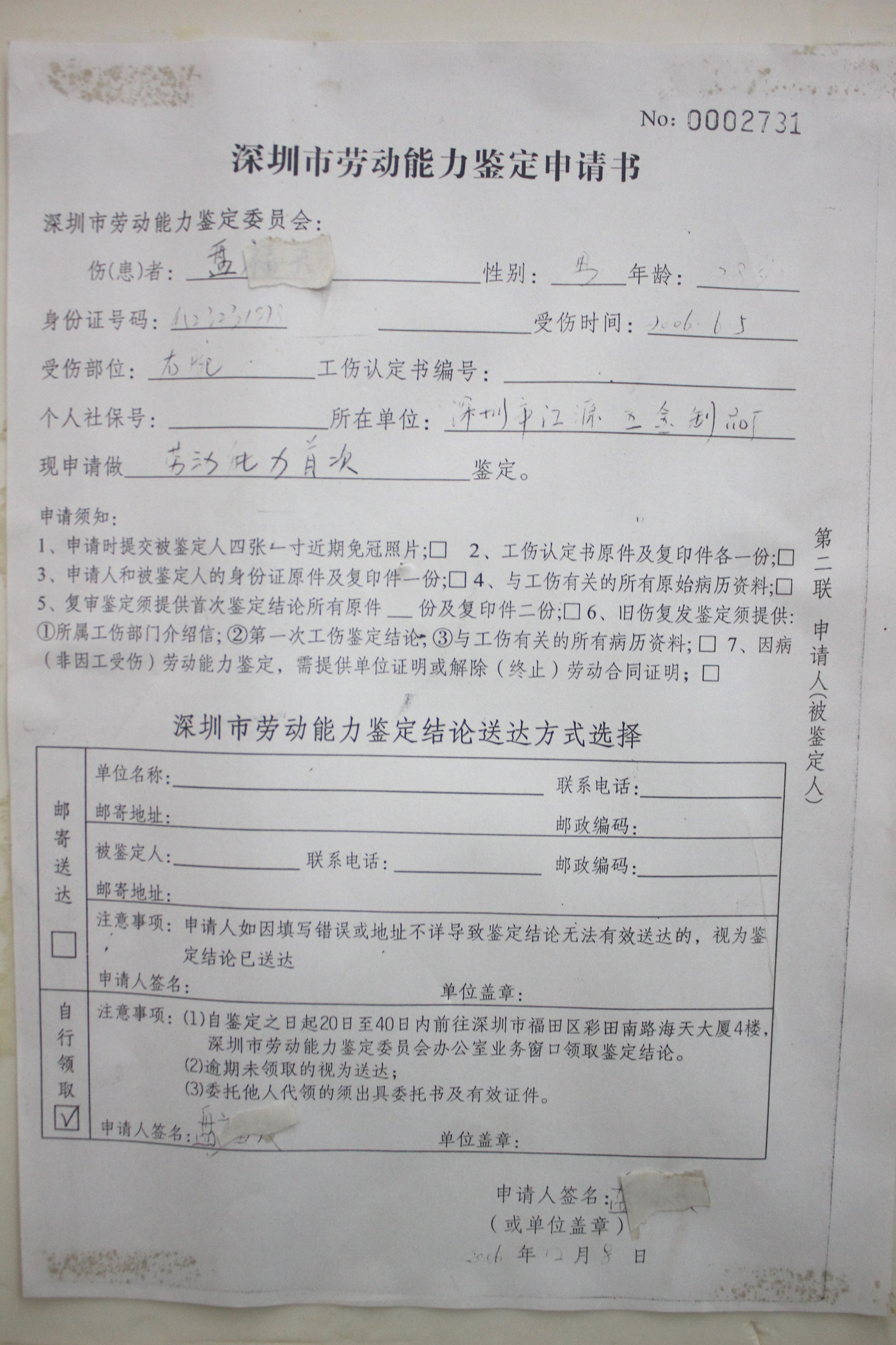 身份证号:452323197*****5,男,1978年2月5日出生,家庭住址:广西全州县东山瑶族乡上塘材委洞洲上村101号,本人于2006年6月1日进深圳市江源五金制品厂,于2006年6月5日上午11:30分左右在一楼车间操伤生产型材冲压工序时,冲床机突然发生故障,将本人整个右手腕压碎,后被厂方送往公明宝田医院治疗,在事故发生后本人已到宝安工商局查询过该厂成立于2006年10月23日,我本人受伤日期是2006年6日5日,现本人特向国家的保险部门申请帮助,望社保部门迅速处理这件事为盼,谢谢!