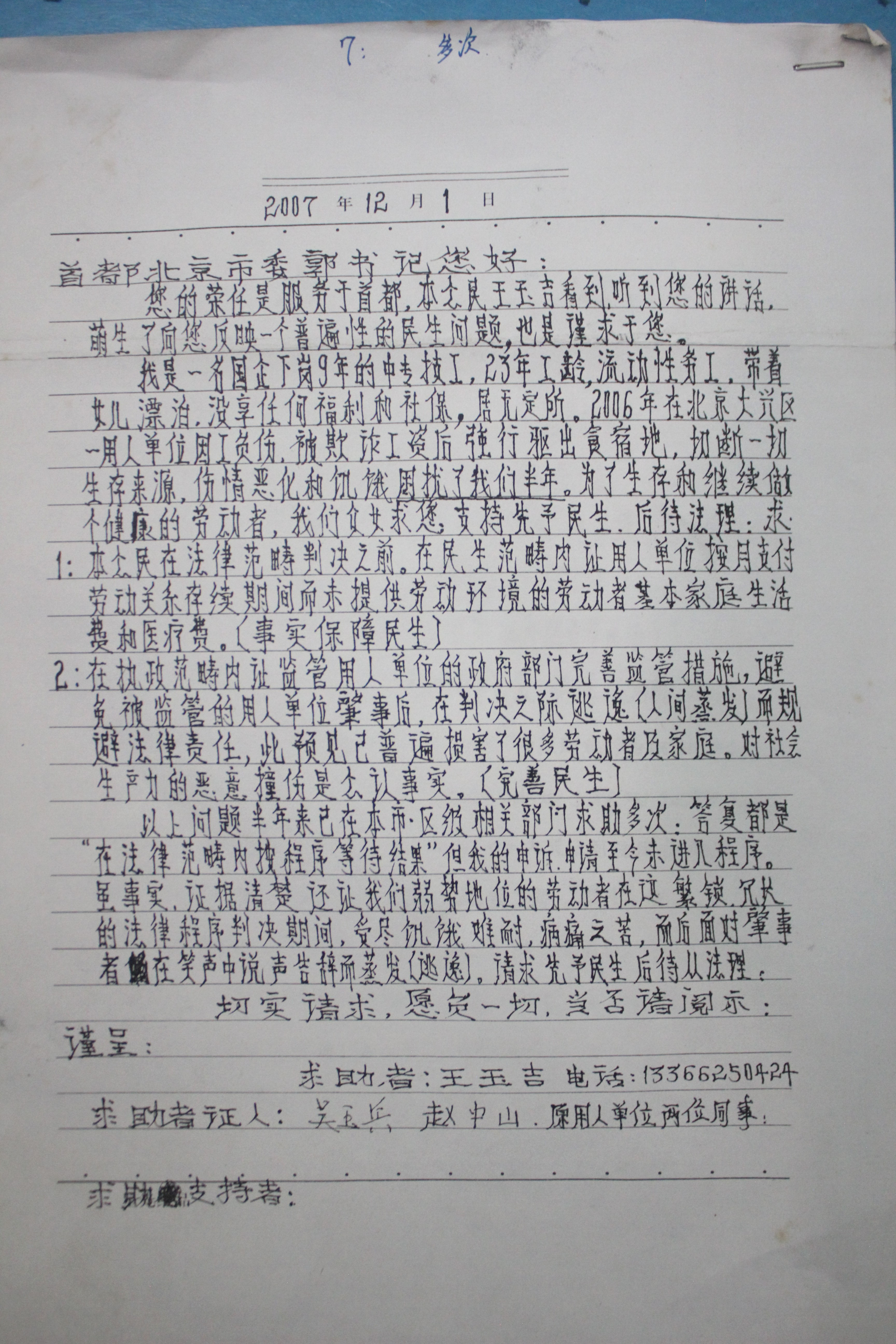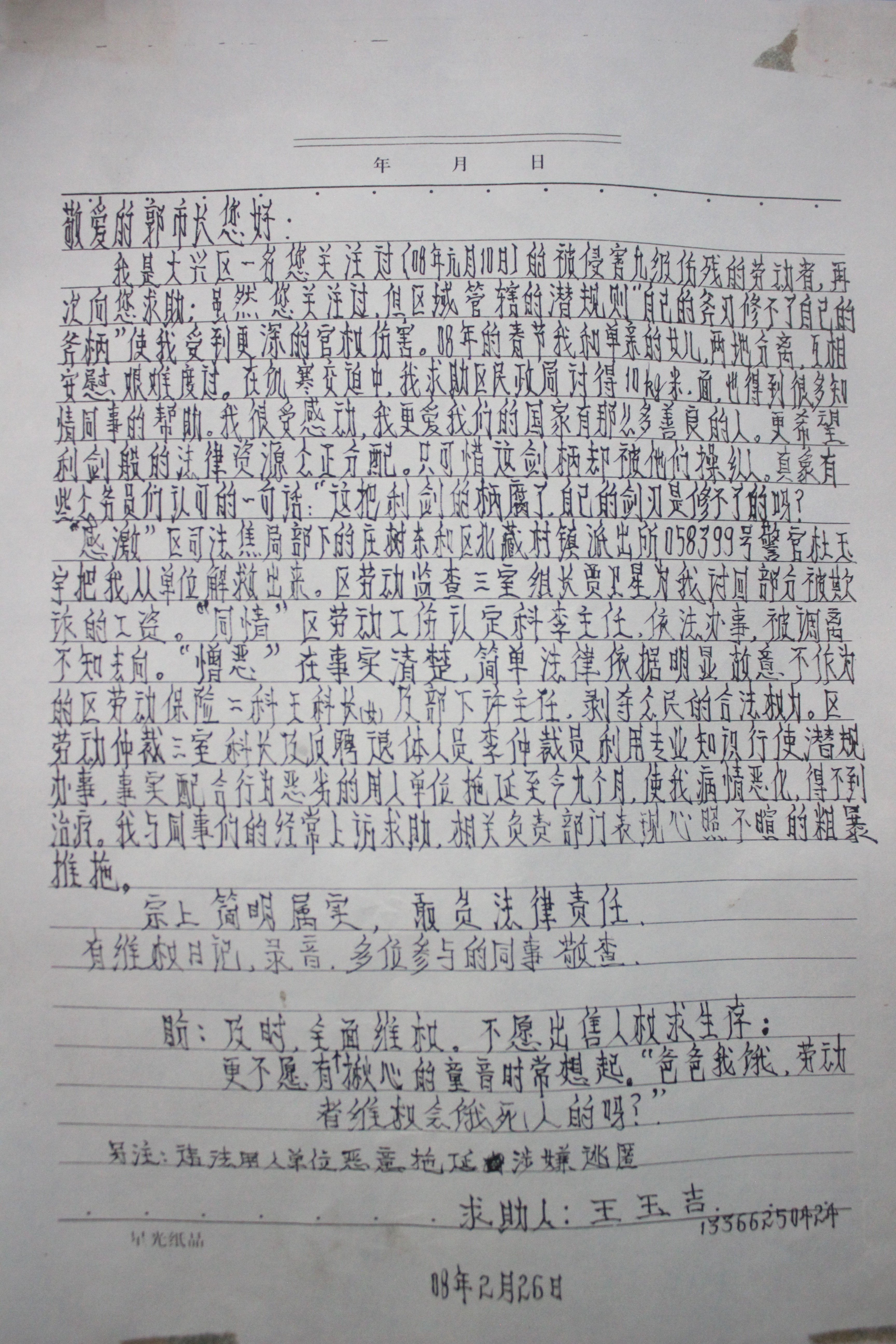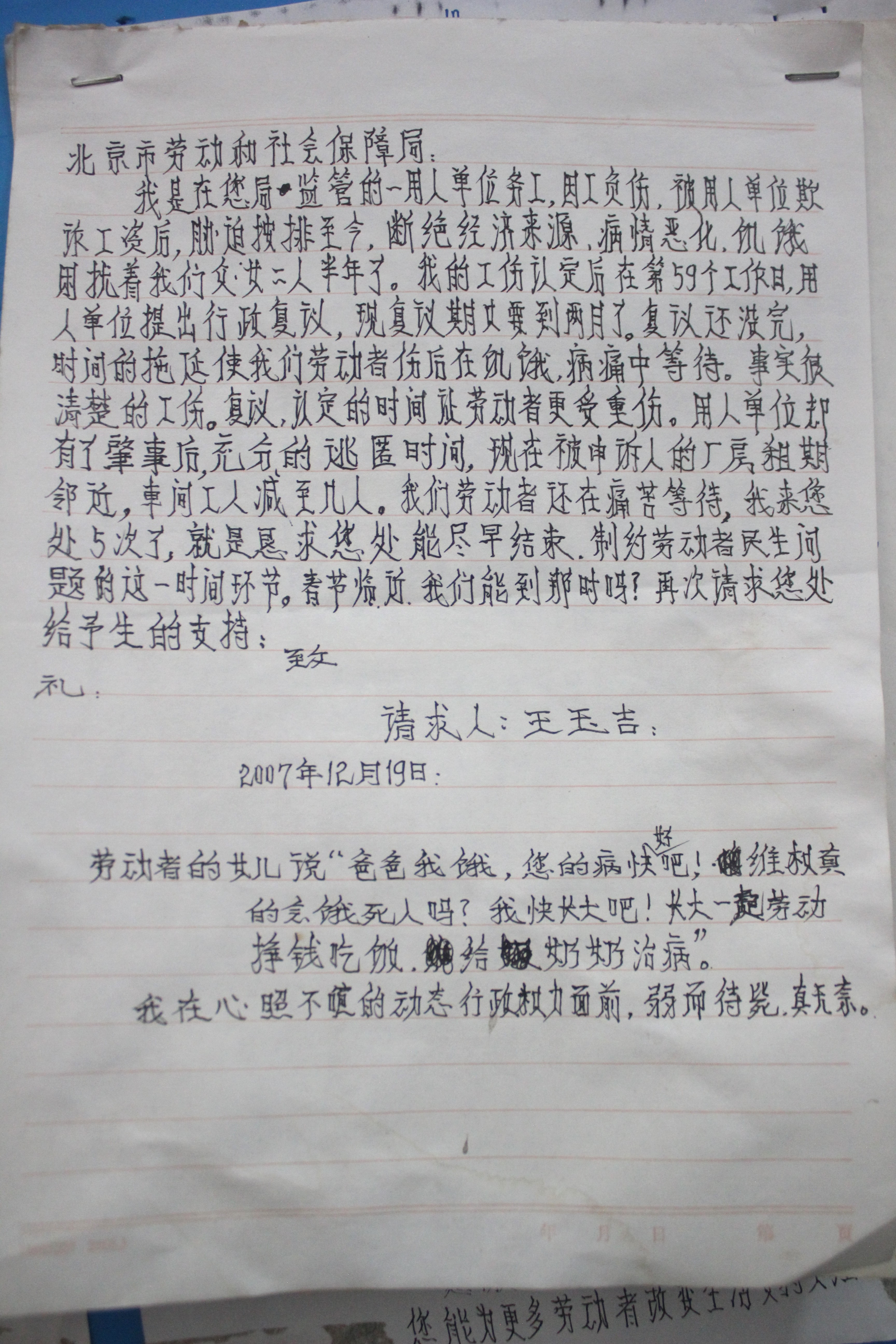 一位工人写给劳动监察大队的举报信,“举报工厂严重违法的内容”