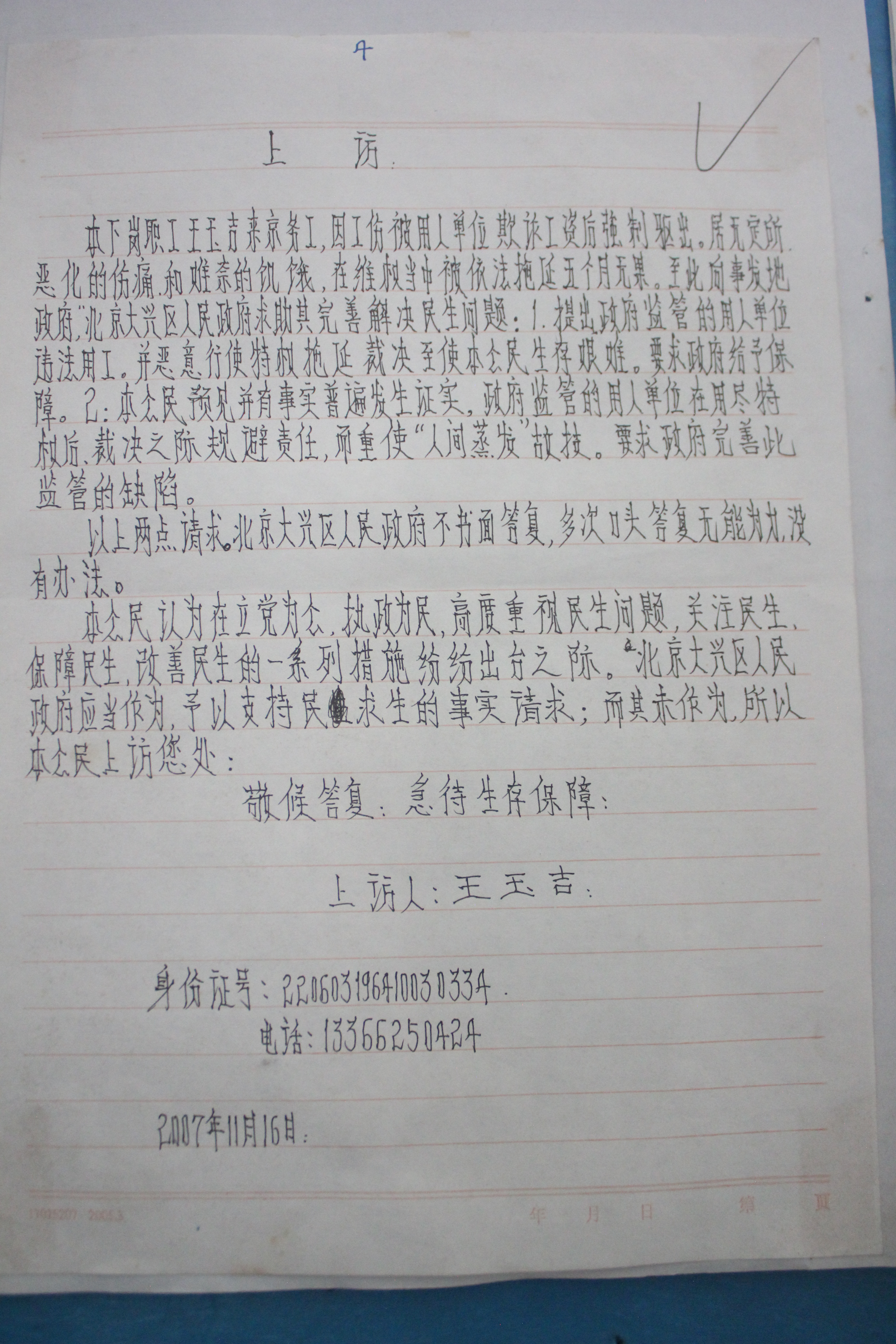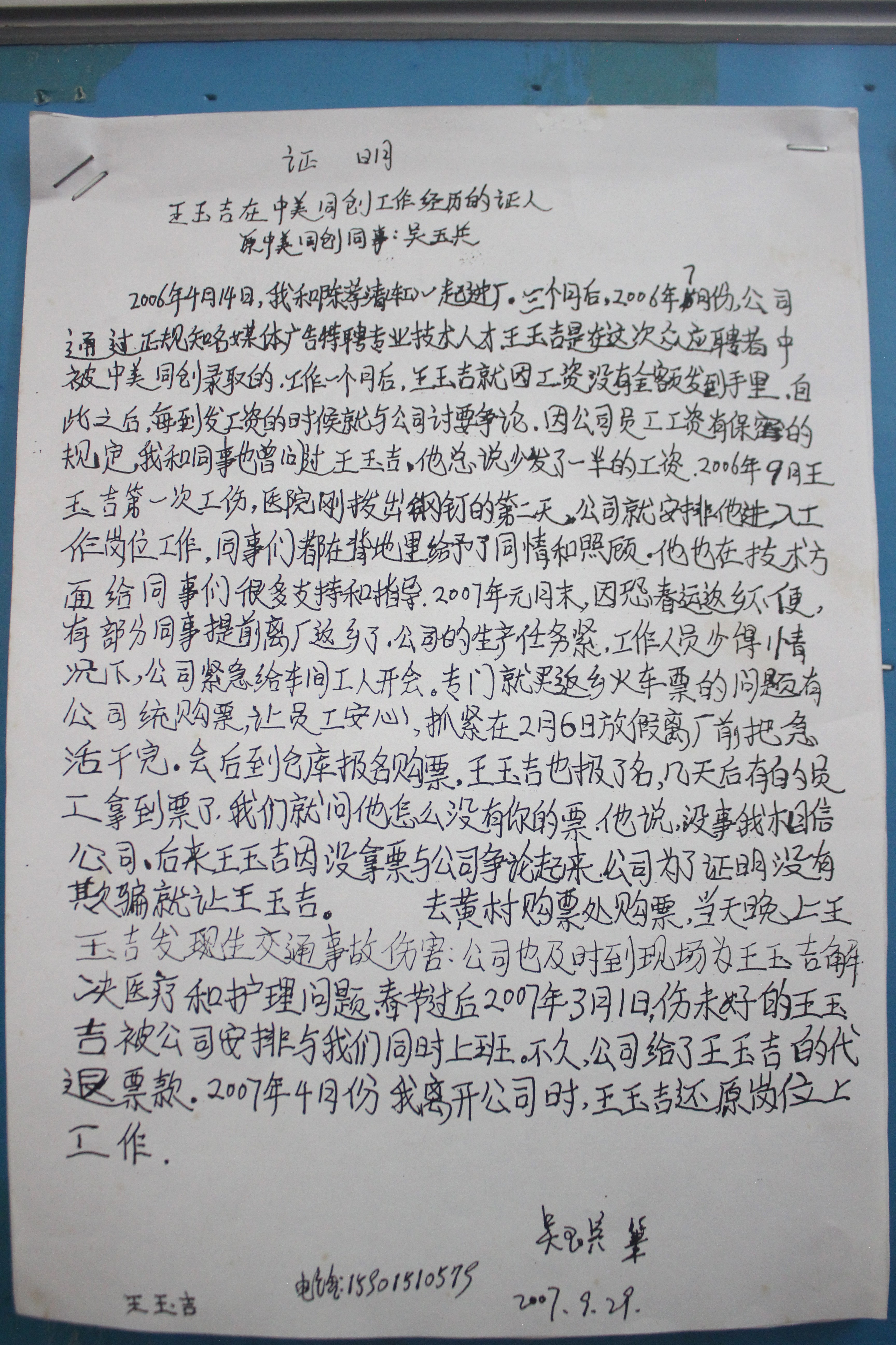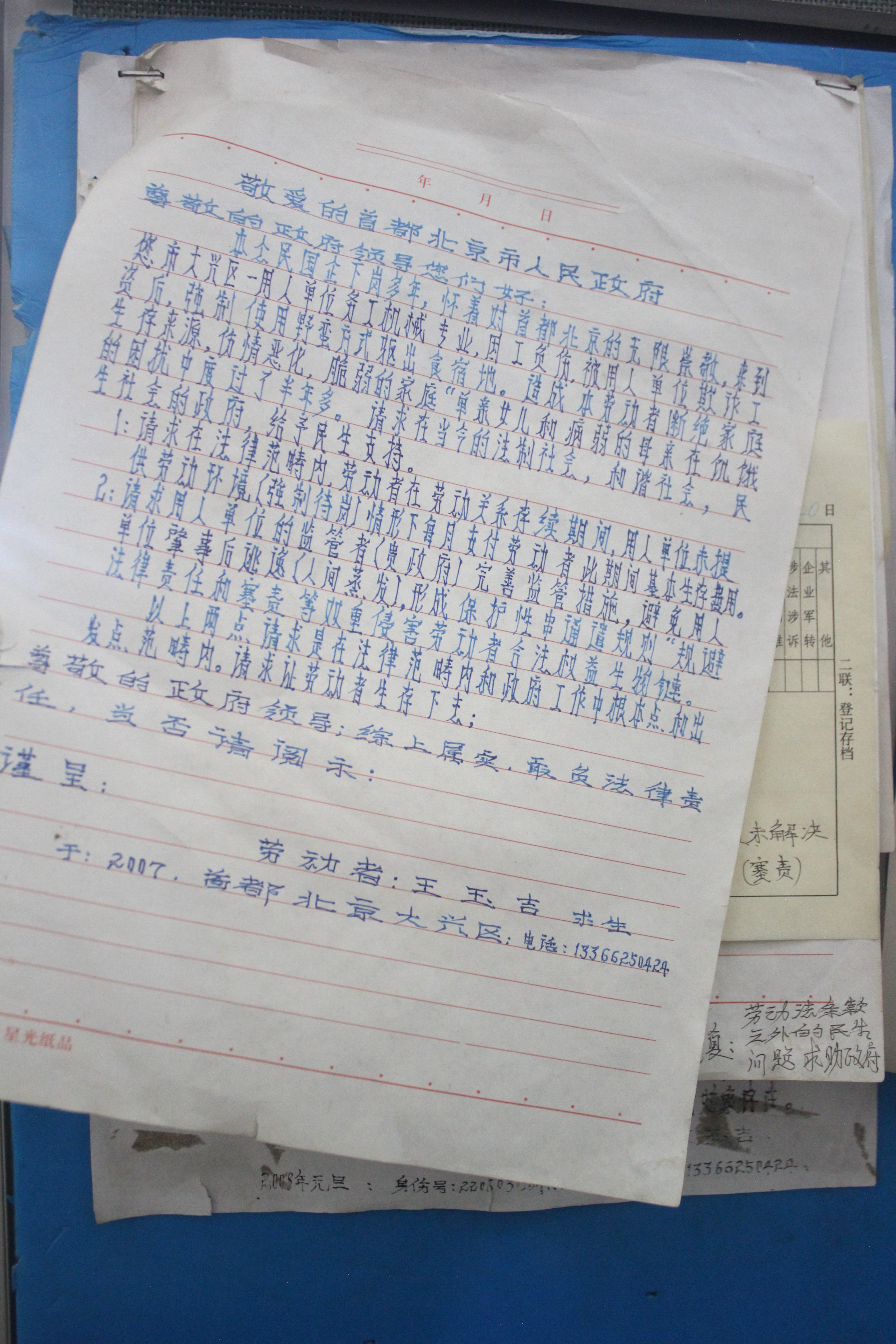 一位工人写给劳动监察大队的举报信,“举报工厂严重违法的内容”